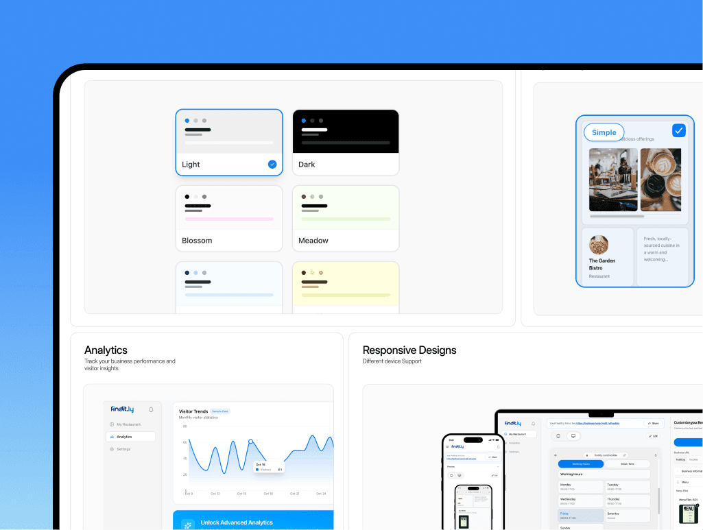 Verwalte alles an einem Ort – von Speisekarten und Öffnungszeiten bis zu Kontaktdaten und Updates.